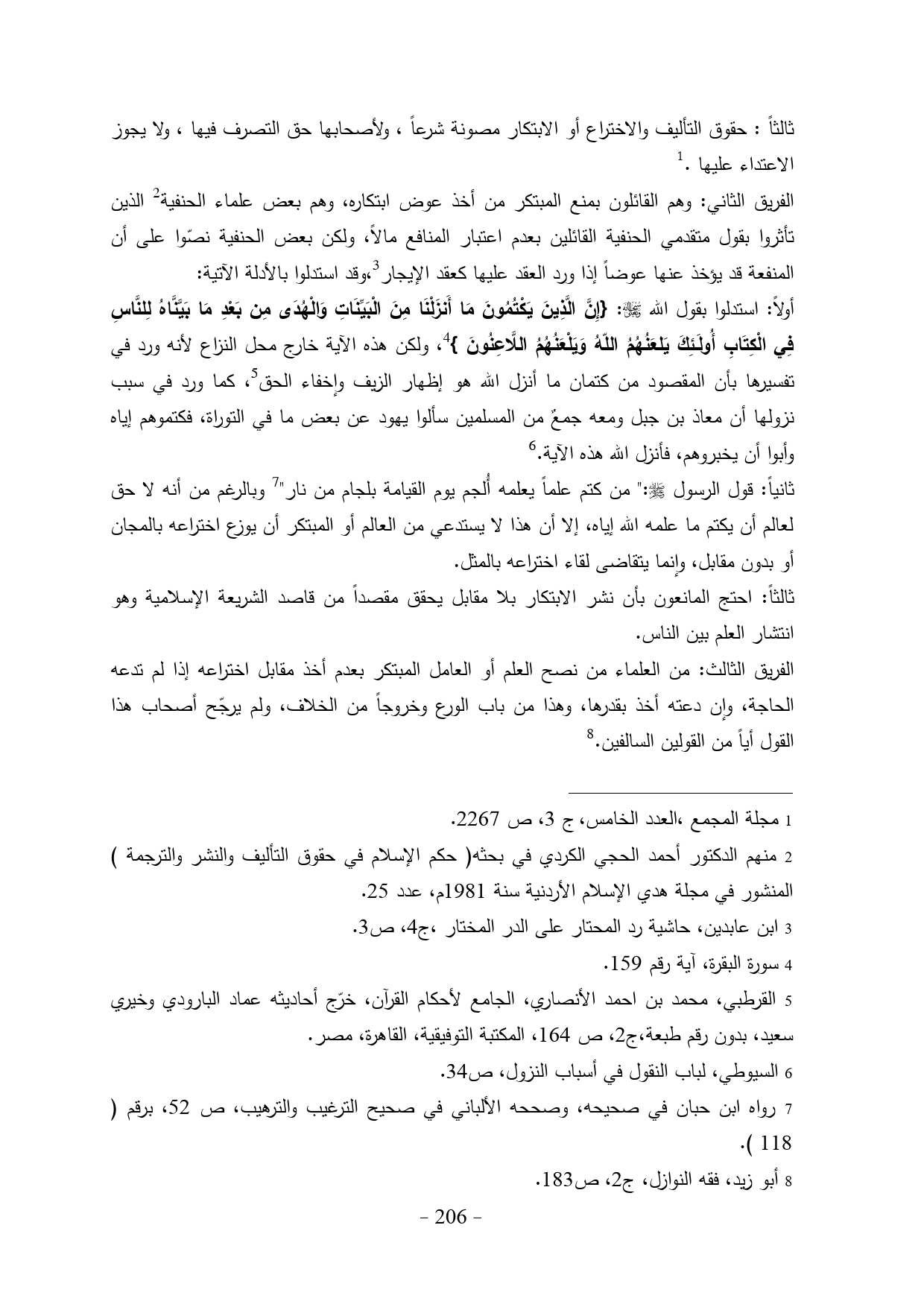 (¬2) منهم الدكتور أحمد الحجي الكردي في بحثه (حكم الإسلام في حقوق التأليف والنشر والترجمة) المنشور في مجلة هدي الإسلام الأردنية سنة 1981م، عدد 25.
