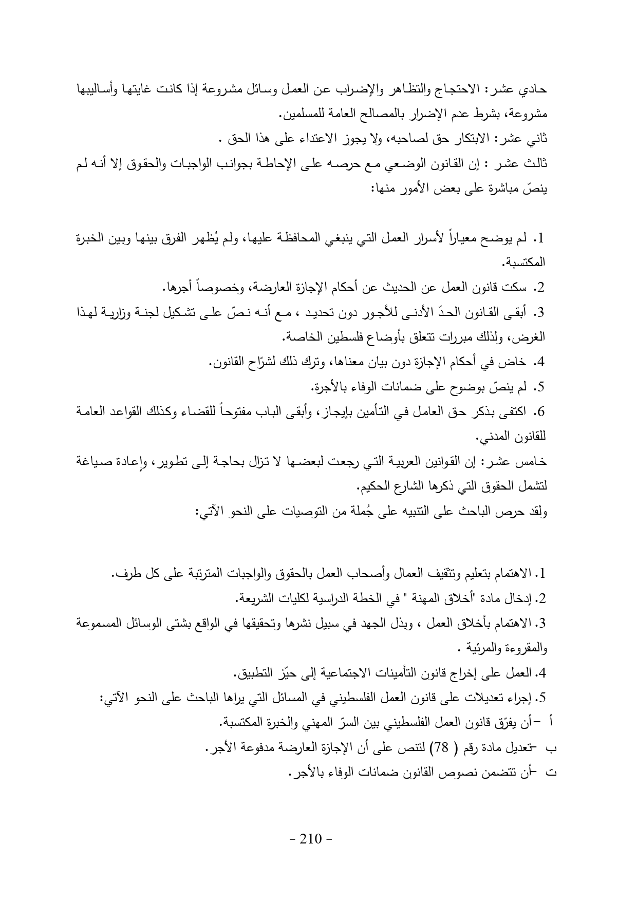 5. إجراء تعديلات على قانون العمل الفلسطيني في المسائل التي يراها الباحث على النحو الآتي: