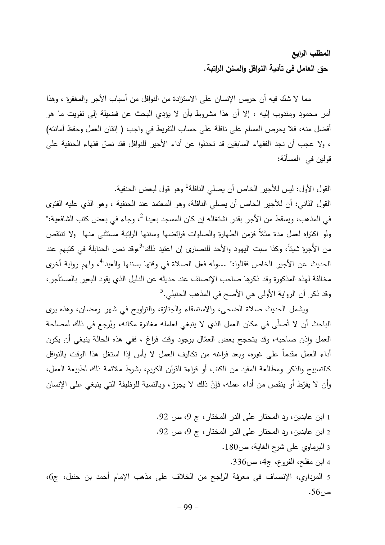 حق العامل في تأدية النوافل والسنن الراتبة