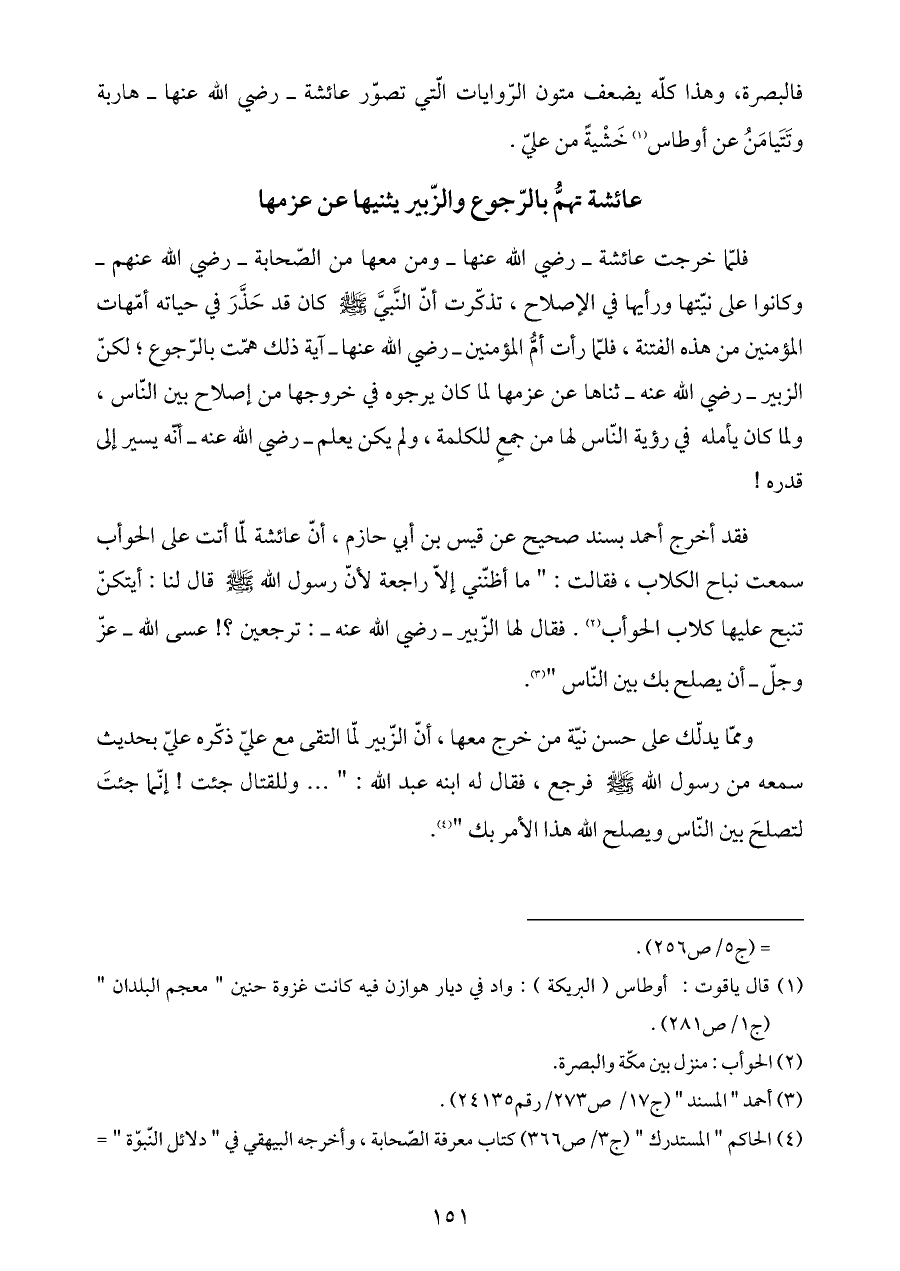 عائشة تهمُّ بالرّجوع والزّبير يثنيها عن عزمها