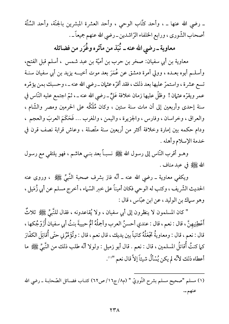 معاوية ـ رضي الله عنه ـ نُبَذ من مآثره وغُرَر من فضائله