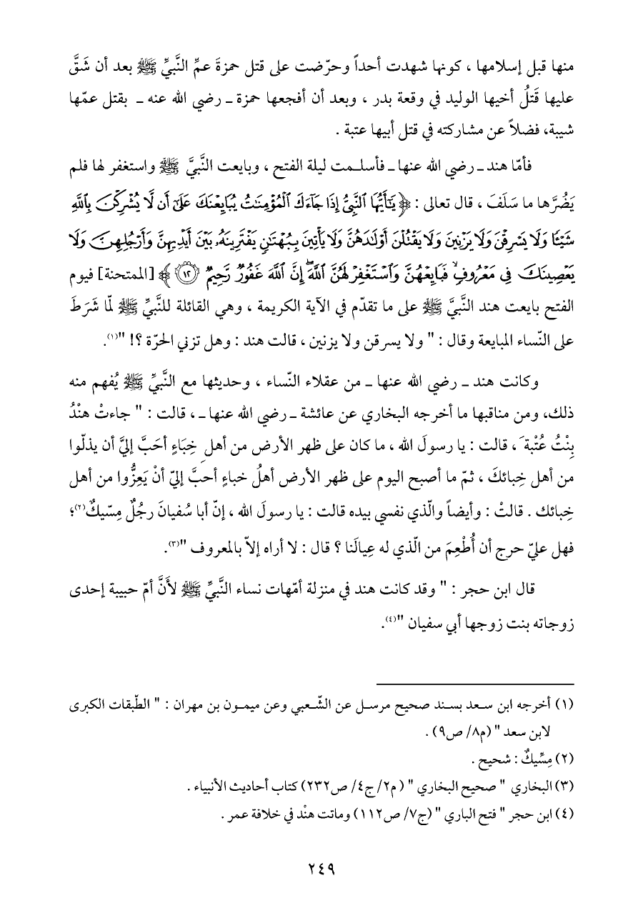 (¬٤) ابن حجر " فتح الباري " (ج ٧/ص ١١٢) وماتت هنْد في خلافة عمر.