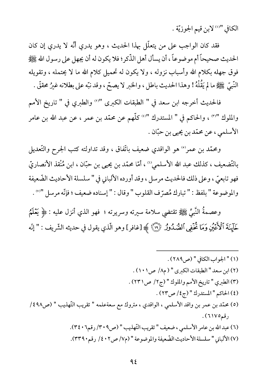(¬٧) الألباني " سلسلة الأحاديث الضّعيفة والموضوعة " (م ٧/ص ٤٠٢/ رقم ٣٣٩٠).