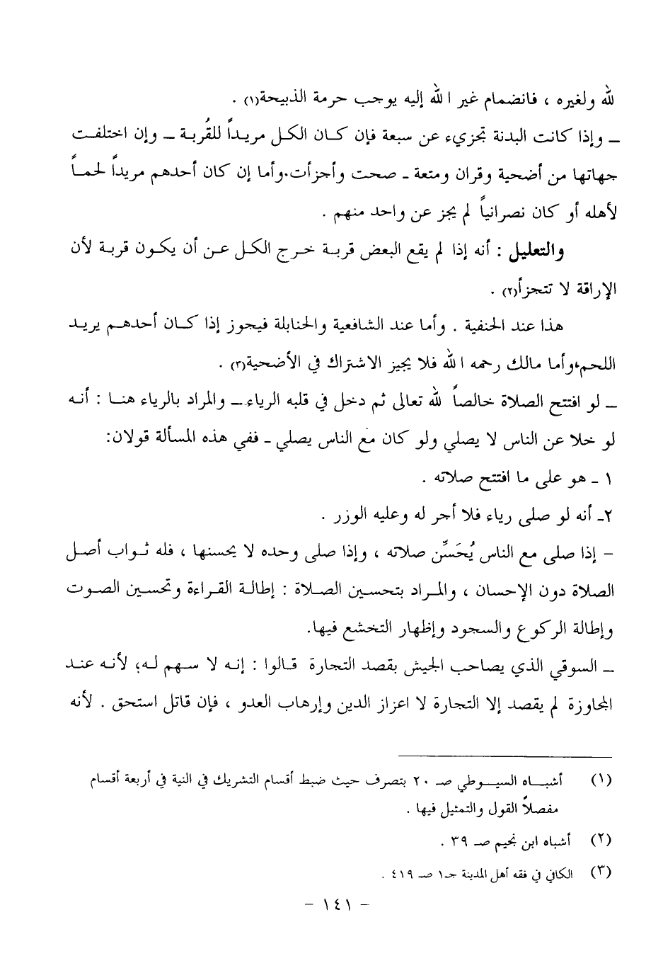 والتعليل: أنه لم يقع البعض قربة خرج الكل عن ان يكون قربة لأن الإراقة لا تتجزأ.