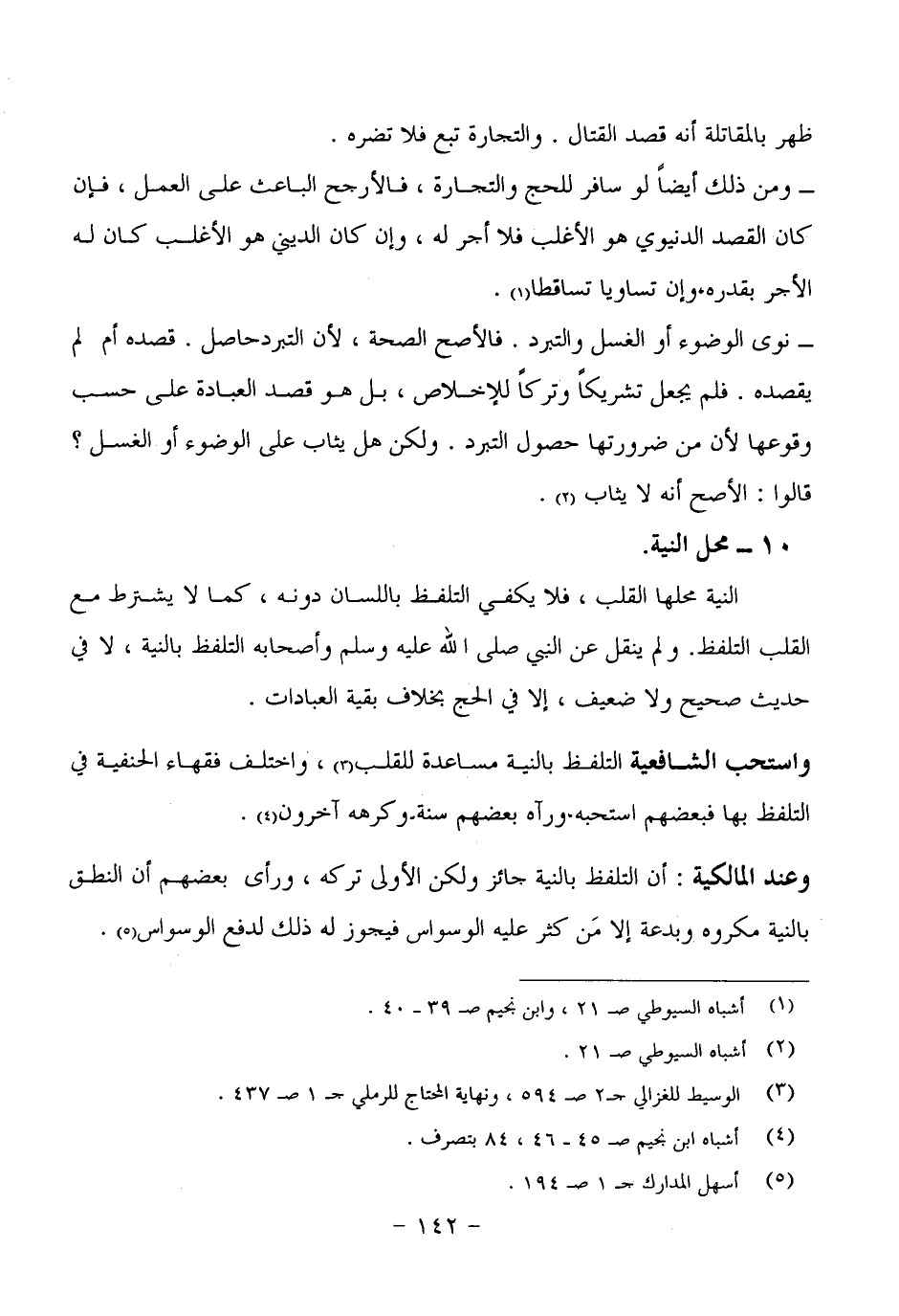 وعند المالكية: أن التلفظ بالنية جائز ولكن الأولى تركه، ورأى بعضهم أن النطق بالنية مكروه وبدعة إلا مَن كثر عليه الوسواس فيجوز له ذلك لدفع الوسواس.