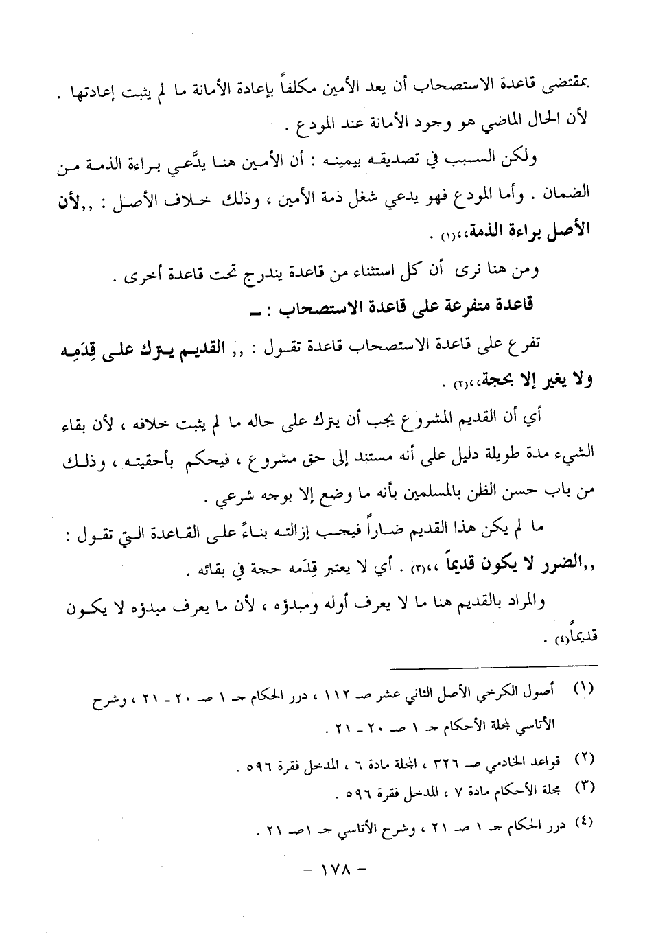 تفرع على قاعدة الاستصحاب قاعدة تقول: (القديم يترك على قِدَمِه ولا يغير إلا بحجة) .