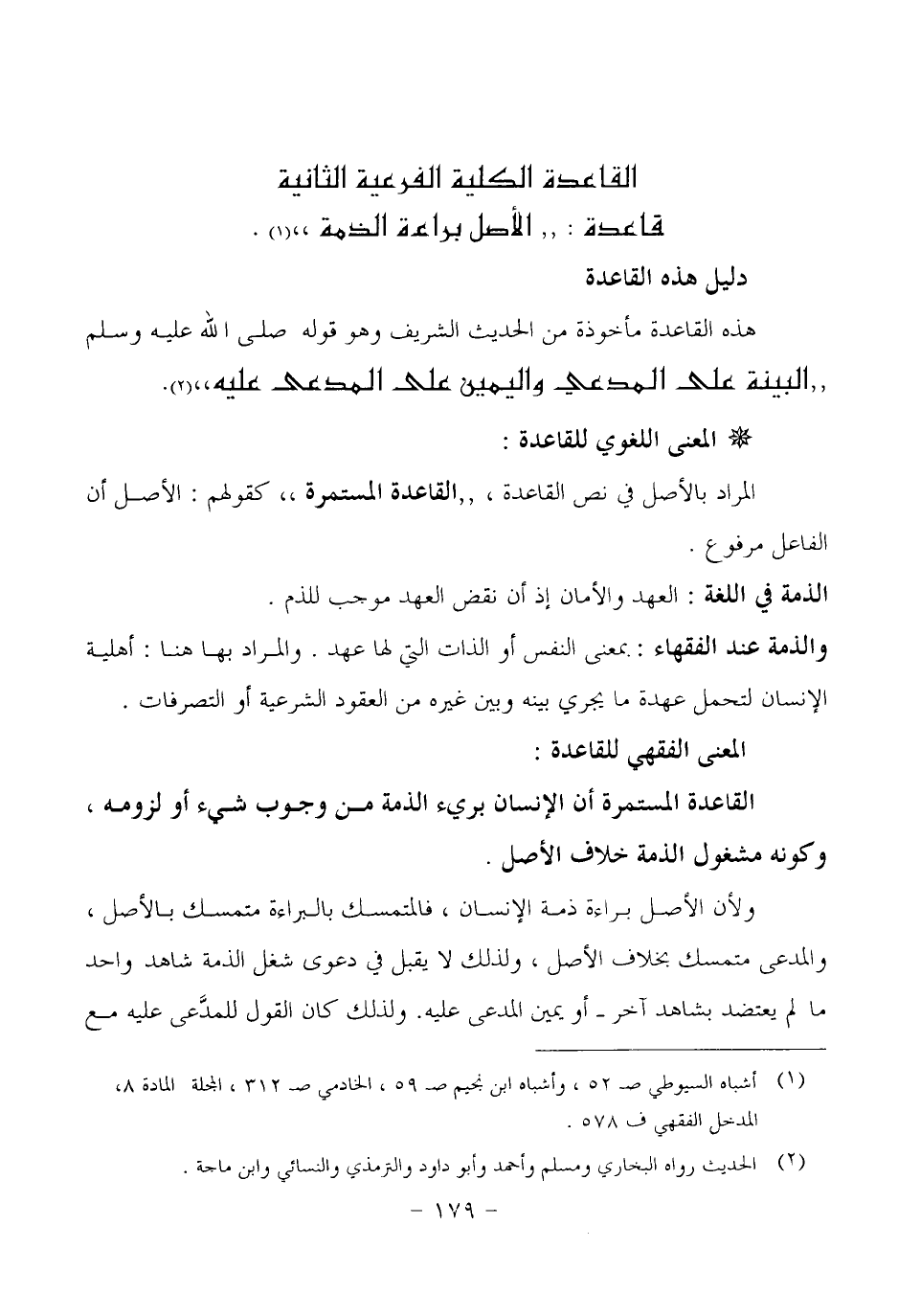 -- قاعدة: (الأصل براءة الذمة) :