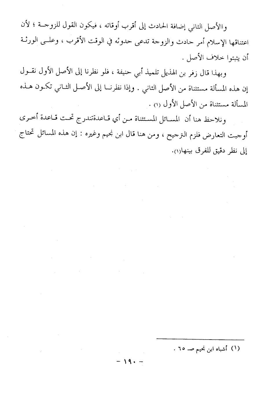 وبهذا قال زفر بن الهذيل تلميذ أبي حنيفة، فلو نظرنا إلى الأصل الأول نقول إن هذه المسألة مستثناة من الأصل الثاني، وإذا نظرنا إلى الأصل الثاني تكون هذه المسألة مستثناة من الأصل الأول.