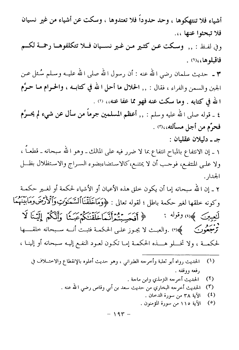 ٣. حديث سلمان رضي الله عنه: أن رسول الله صلى الله عليه وسلم سُئل عن الجبن والسمن والفراء، فقال: (الحلال ما أحل الله في كتابه، والحرام ما حرَّم الله في كتابه. وما سكت عنه فهو مما عفا عنه) .