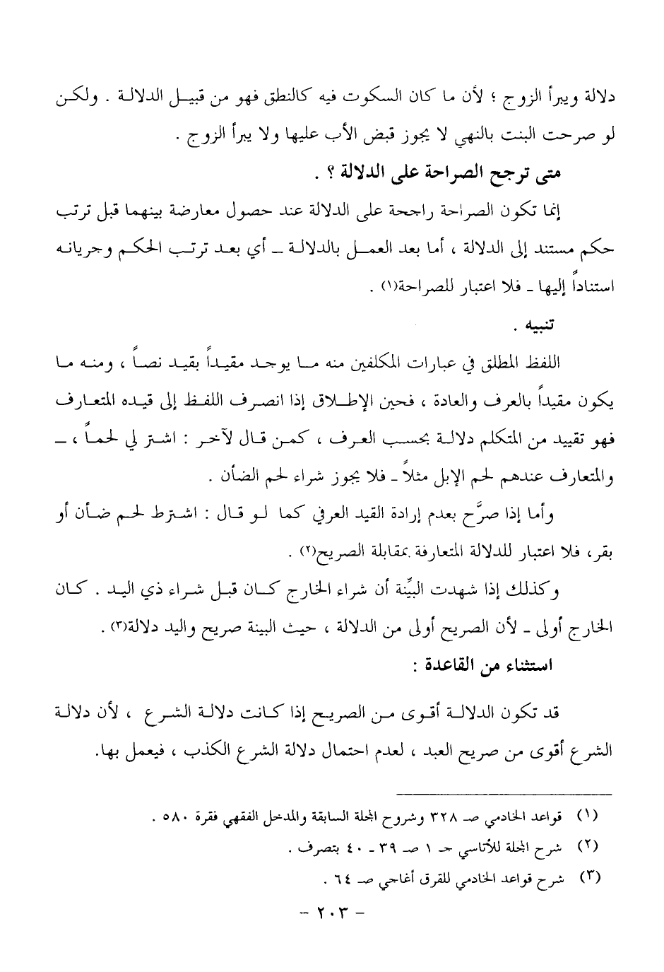 إنما تكون الصراحة راجحة على الدلالة عند حصول معارضة بينهما قبل ترتب حكم مستند إلى الدلالة، أما بعد العمل بالدلالة، أي بعد ترتب الحكم وجريانه استناداً إليها، فلا اعتبار للصراحة.