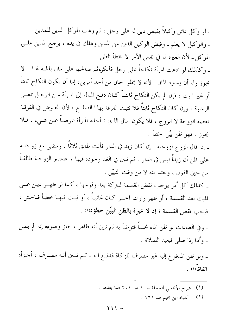 والوكيل لا يعلم وقبض الوكيل الدين من المدين وهلك في يده، يرجع المدين على الموكل، لأن العبرة لما في نفس الأمر لا لخطأ الظن.