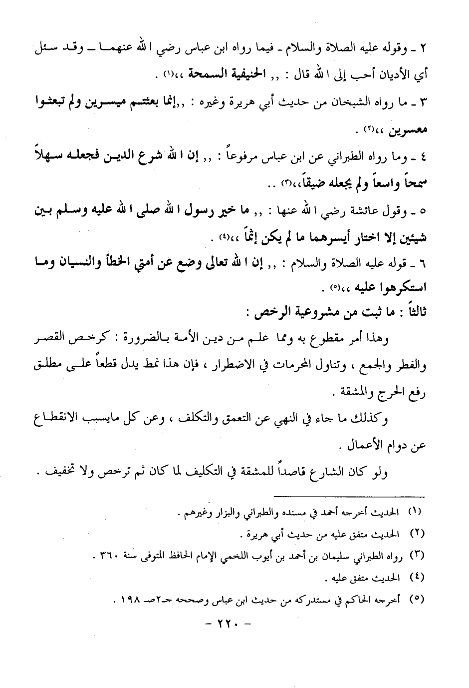 ٢. وقوله عليه الصلاة والسلام فيما رواه ابن عباس رضي الله عنهما وقد سئل أي الأديان أحب إلى الله قال: (الحنيفية السمحة) .
