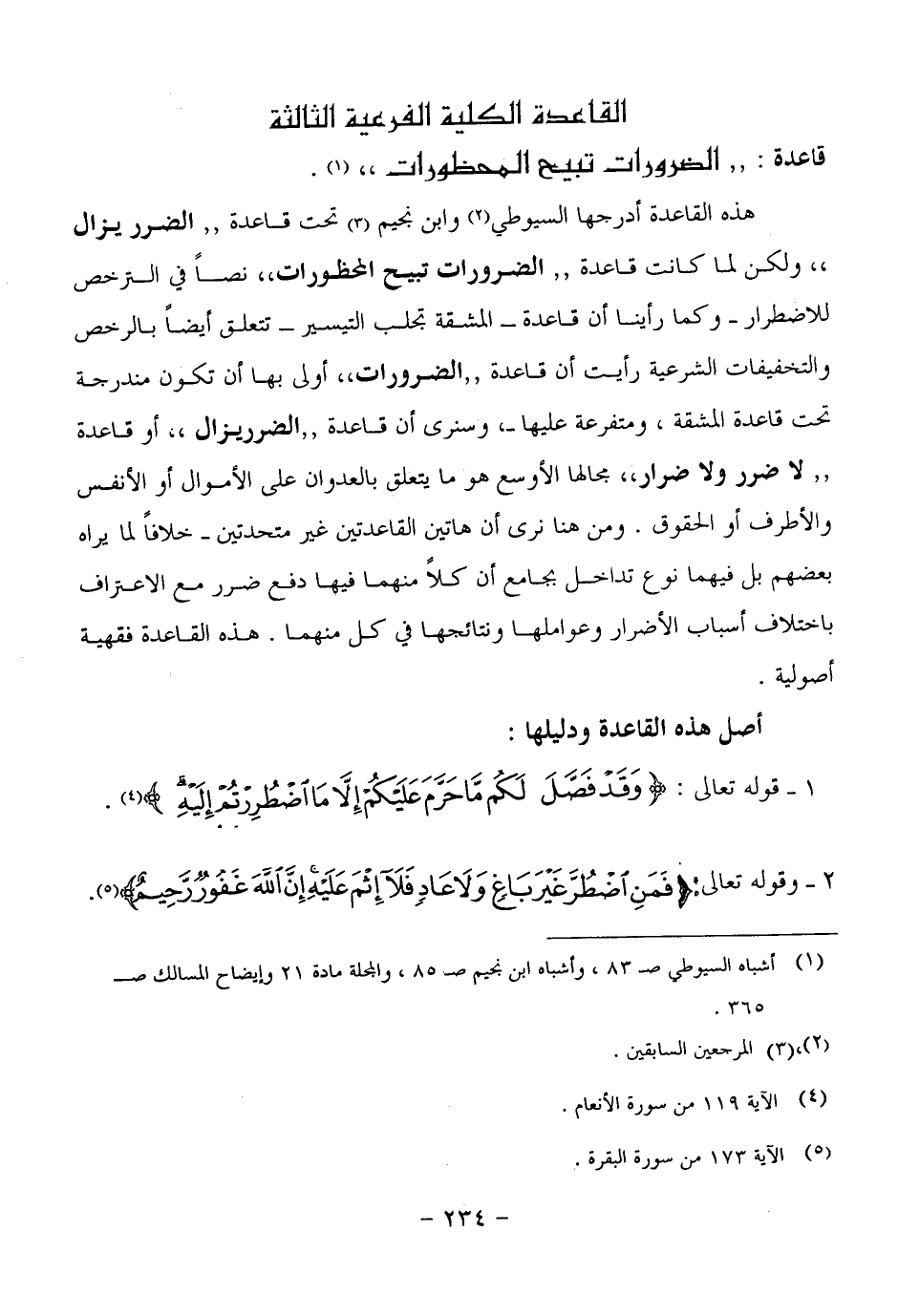 ١. قوله تعالى: (وقد فصَّل لكُم ما حَرَّم عليكُم إلا ما اضطررتُم إليهِ) . سورة الأنعام، آية (١١٩) .