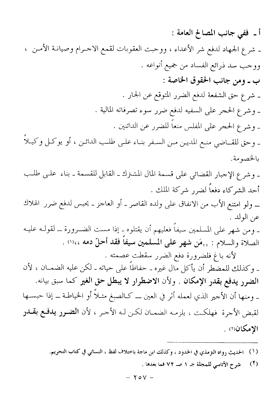 شرع الجهاد لدفع شر الأعداء، ووجبت العقوبات لقمع الأجرام وصيانة الأمن، ووجب سد ذرائع الفساد من جميع أنواعه.
