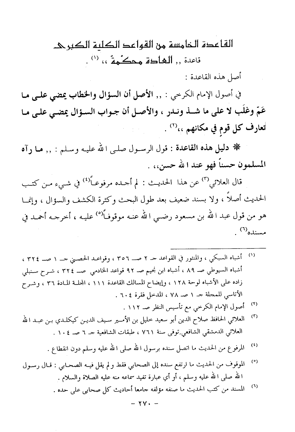 -- القاعدة الخامسة من القواعد الكلية الكبرى: