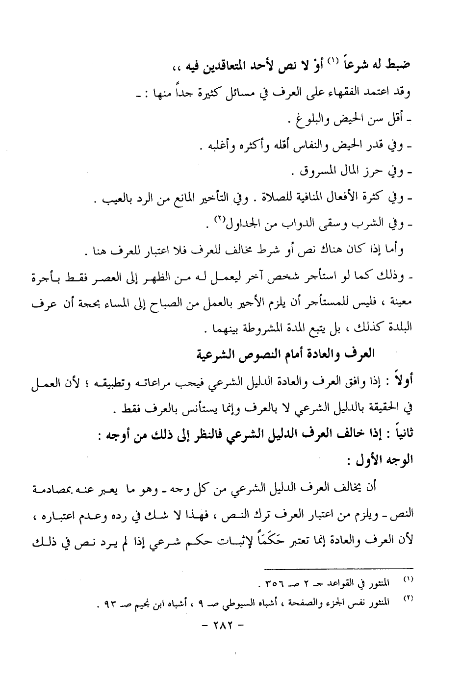 أولاً: إذا وافق العرف والعادة الدليل الشرعي فيجب مراعاته وتطبيقه؛ لأن العمل في الحقيقة بالدليل الشرعي لا بالعرف وإنما يستأنس بالعرف فقط.