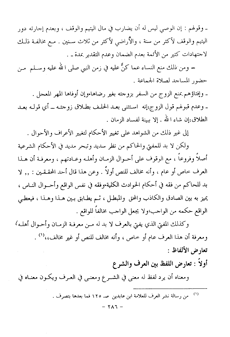 ولكن لا بد للمفتي والحاكم من نظر سديد وتبحر مديد في الأحكام الشرعية أصلاً وفروعاً، مع الوقوف على أحوال الزمان وأهله وعادتهم، ومعرفة أن هذا العرف خاص أو عام، وأنه مخالف للنص أولاً، وعن هذا قال أحد المحققين: (لا بد للحاكم من فقه في أحكام الحوادث الكلية، وفقه في نفس الواقع وأحوال الناس، يميز به بين الصادق والكاذب والمحق والمبطل، ثم يطابق بين هذا وهذا، فيعطي الواقع حكمه من الواجب، ولا يجعل الواجب مخالفاً للواقع.