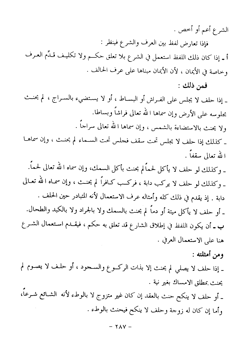 (ا) إذا كان ذلك اللفظ استعمل في الشرع بلا تعلق حكم ولا تكليف قدِّم العرف وخاصة في الإيمان، لأن الإيمان مبناها على عرف الحالف.