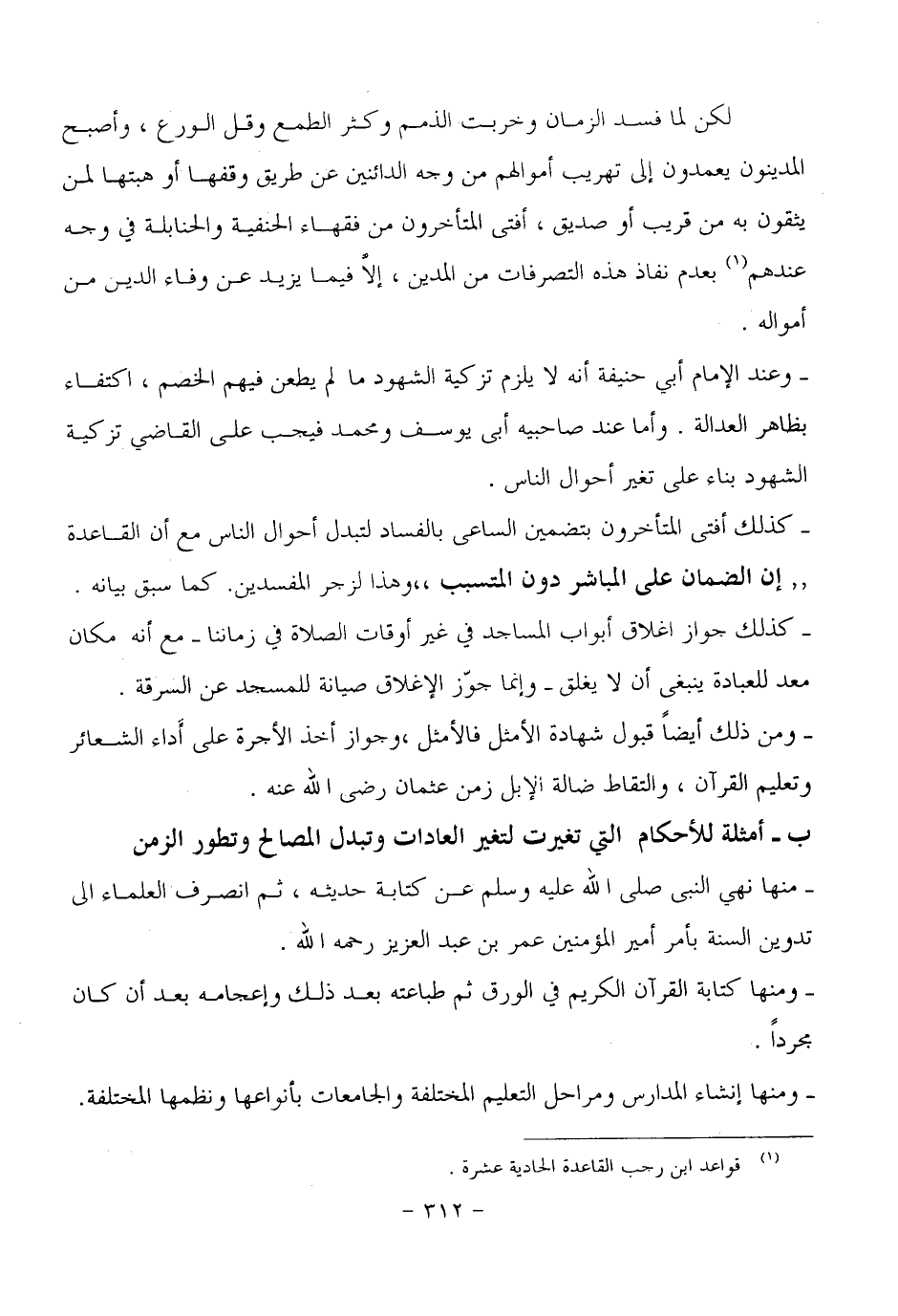 (ب) أمثلة للأحكام التي تغيرت لتغير العادات وتبدل المصالح وتطور الزمن.