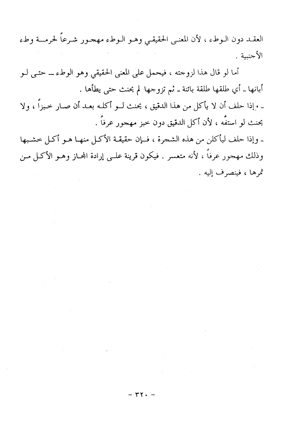 وإذا حلف ليأكلن من هذه الشجرة، فإن حقيقة الأكل منها هو أكل خشبها وذلك مهجور عرفاً، لأنه متعسر، فيكون قرينة على إرادة المجاز وهو الأكل من ثمرها، فينصرف إليه.