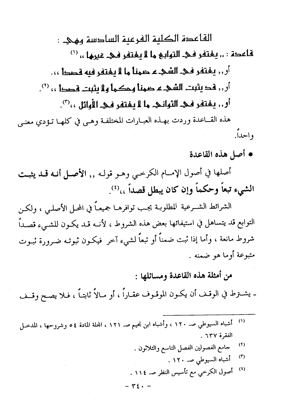 الشرائط الشرعية المطلوبة يجب توافرها جميعاً في المحل الأصلي، ولكن التوابع قد يتساهل في استيفائها بعض هذه الشروط، لأنه قد يكون للشيء قصداً شروط مانعة، وأما إذا ثبت ضمناً أو تبعاً لشيء آخر فيكون ثبوته ضرورة ثبوت متبوعة أو ما هو ضمنه.