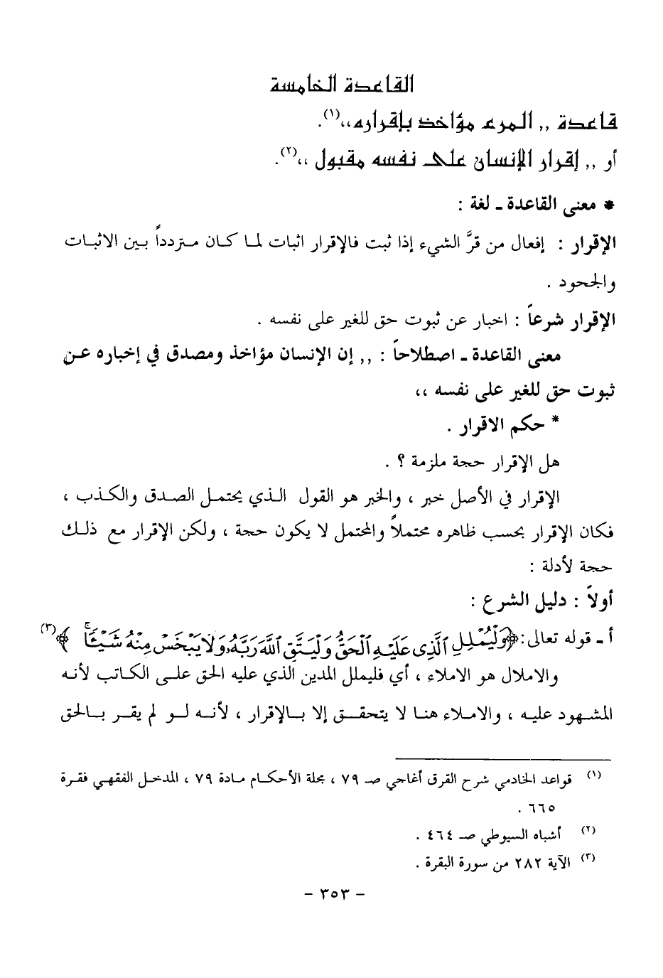 قاعدة: (المرء مؤاخذ بإقراره) :