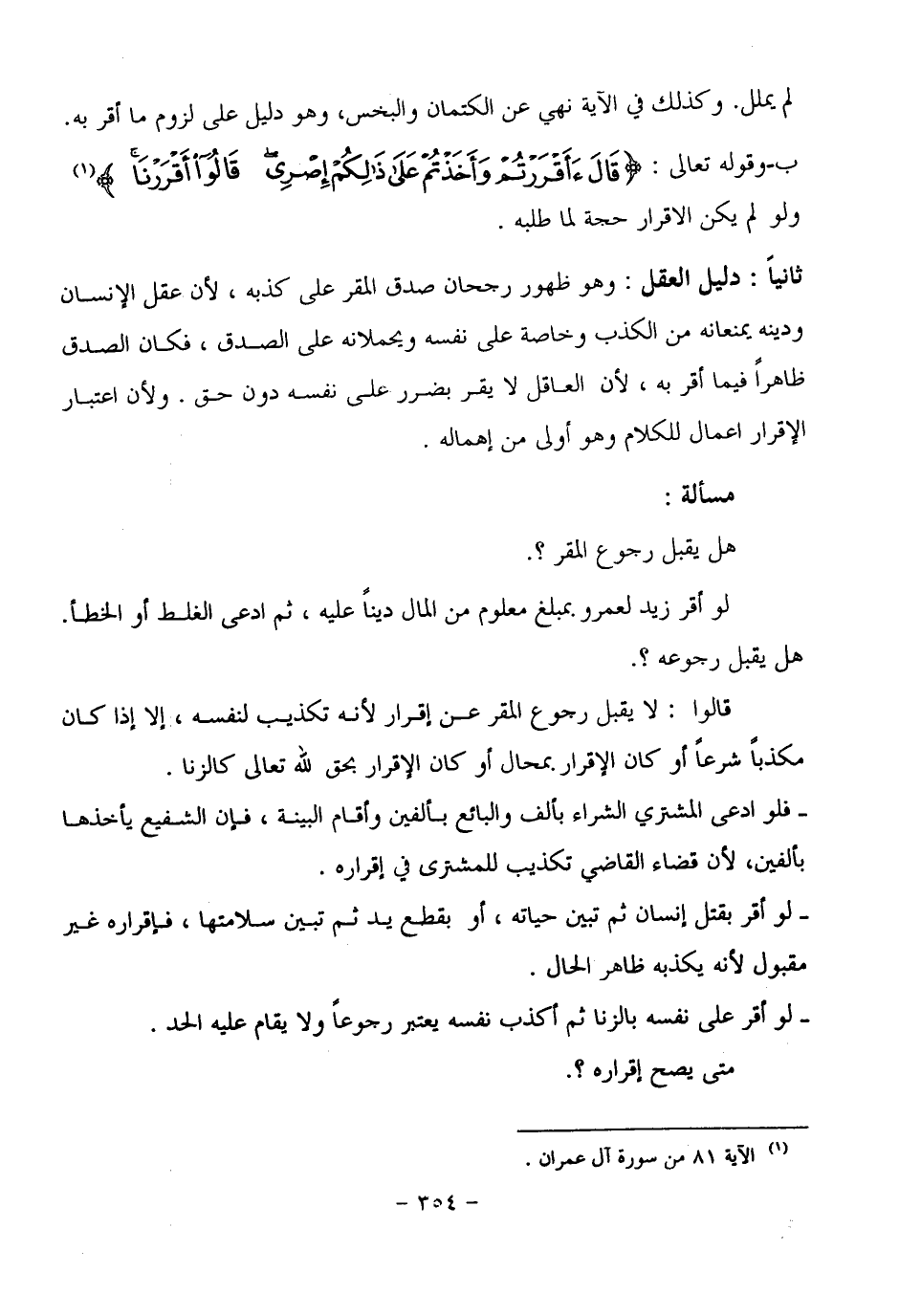 مسألة: هل يقبل رجوع المقر؟