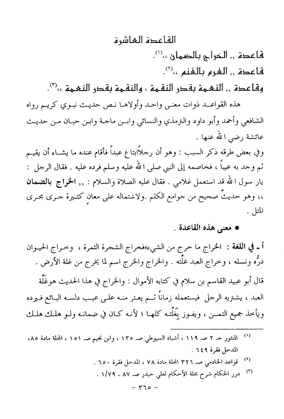 هذه القواعد ذوات معنى واحد وأولاها نص حديث نبوي كريم رواه الشافعي وأحمد وأبو داود والترمذي والنسائي وابن ماجة وابن حبان من حديث عائشة رضي الله عنها.