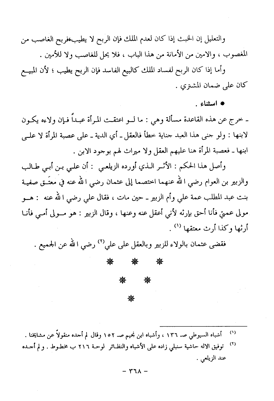 فقضى عثمان بالولاء للزبير وبالعقل على علي رضي الله عن الجميع.
