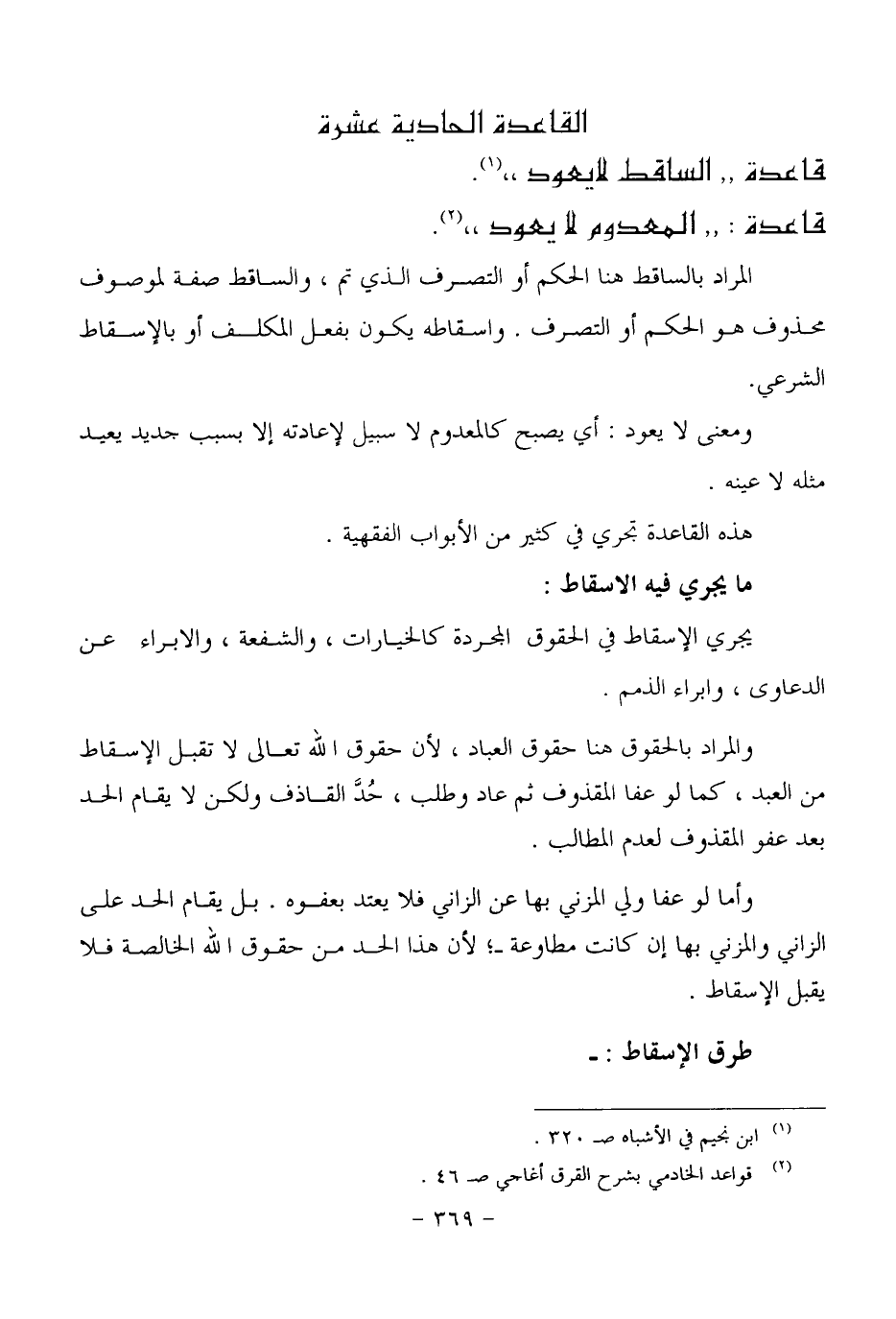 والمراد بالحقوق هنا حقوق العباد، لأن حقوق الله تعالى لا تقبل الإسقاط من العبد، كما لو عفا المقذوف ثم عاد وطلب، حُدَّ القاذف ولكن لا يقام الحد بعد عفو المقذوف لعدم المطالب.
