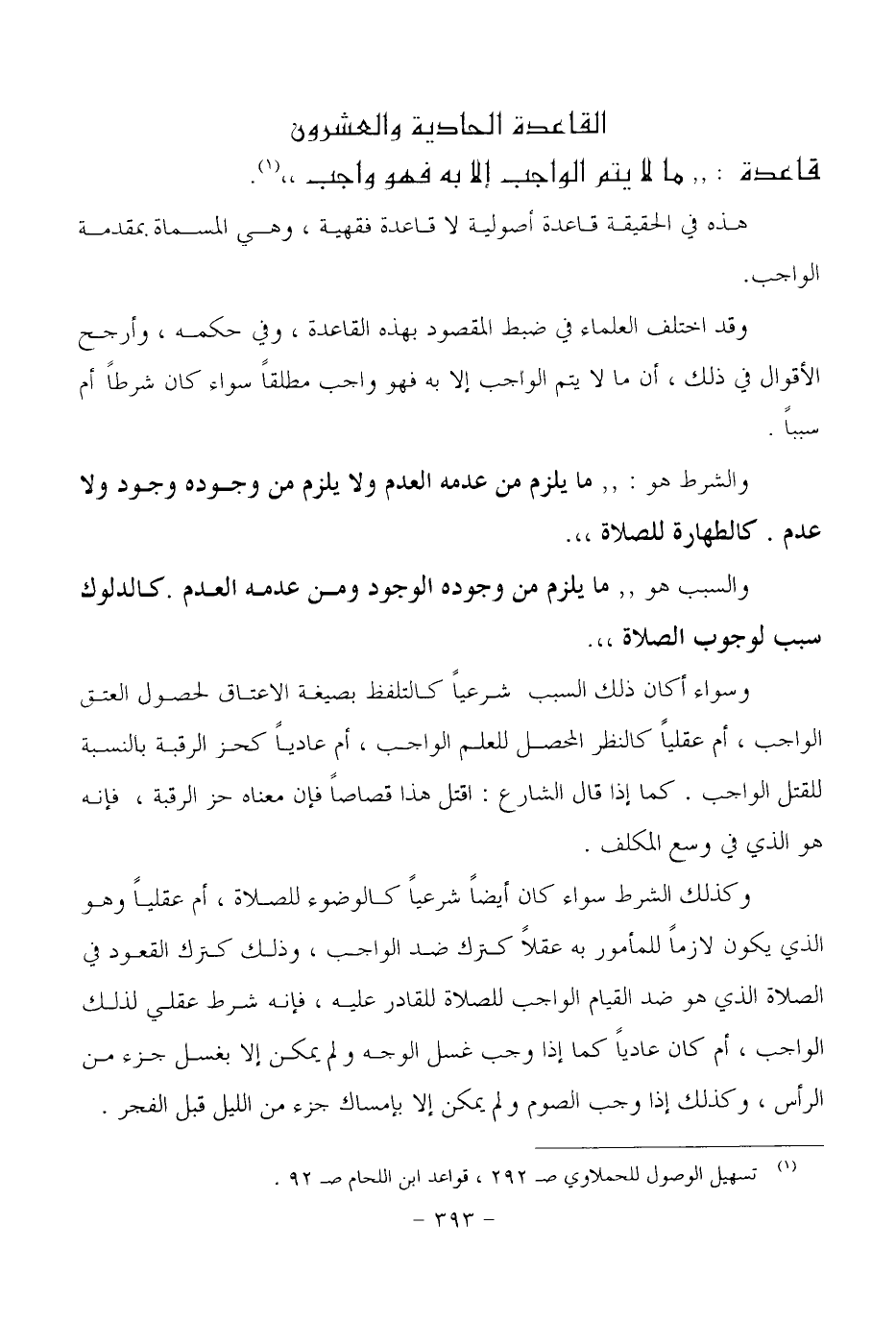 وقد اختلف العلماء في ضبط المقصود بهذه القاعدة، وفي حكمه، وأرجح الأقوال في ذلك، أن ما لا يتم الواجب إلا به فهو واجب مطلقاً سواء كان شرطاً أم سبباً.