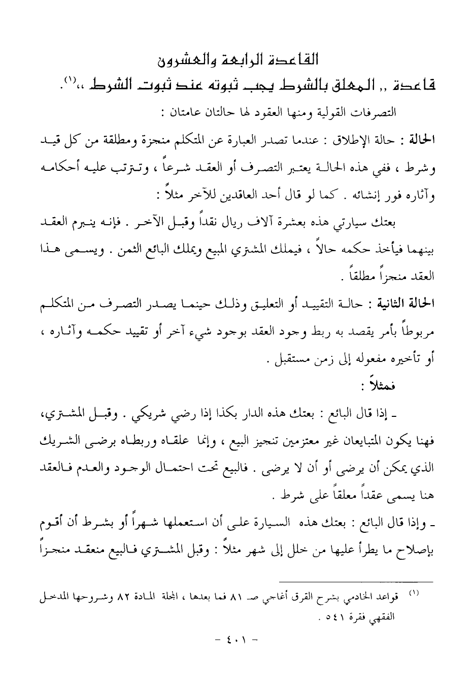 قاعدة: (المعلق بالشرط يجب ثبوته عند ثبوت الشرط) :