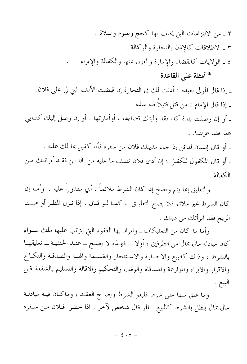 وما علق منها على شرط فليغو الشرط ويصح العقد، وما كان فيه مبادلة مال بمال يبطل بالشرط كالبيع، فلو قال شخص آخر: إذا حضر فلان من سفره
