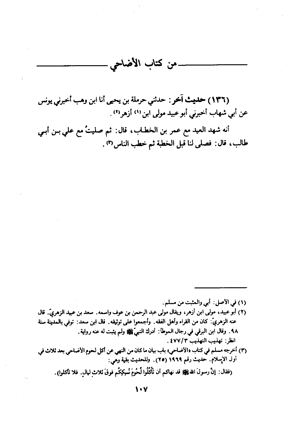 136 - حَدِيث آخر حَدثنِي حَرْمَلَة بن يحيى أَنا ابْن وهب أَخْبرنِي يُونُس عَن أبي شهَاب أَخْبرنِي أَبُو عبيد مولى ابْن أَزْهَر