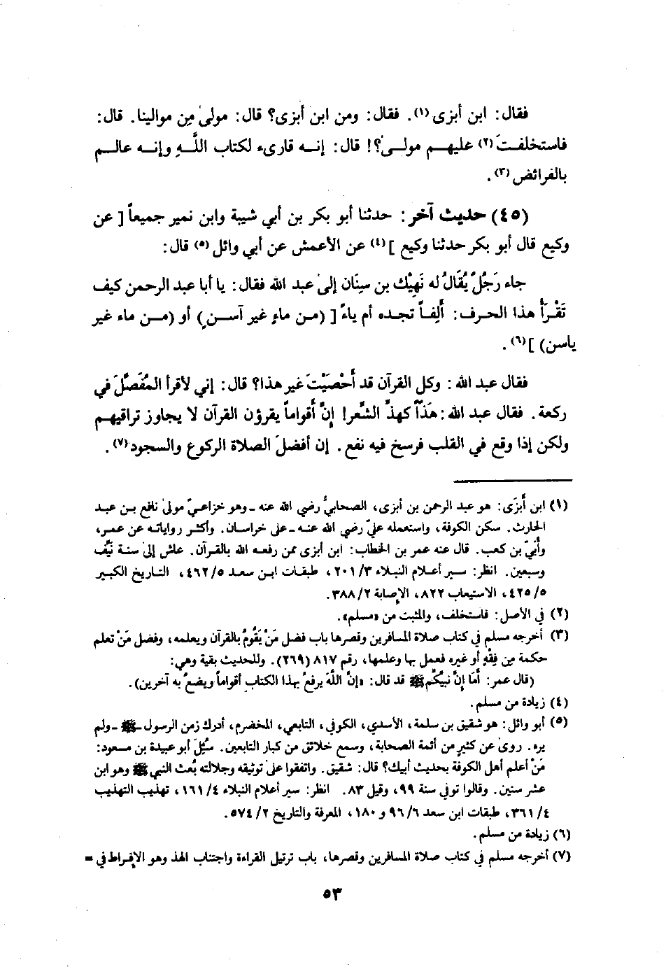 45 - حَدِيث آخر حَدثنَا أَبُو بكر بن أبي شيبَة وَابْن نمير جَمِيعًا عَن وَكِيع قَالَ أَبُو بكر حَدثنَا وَكِيع عَن الْأَعْمَش عَن أبي وَائِل قَالَ