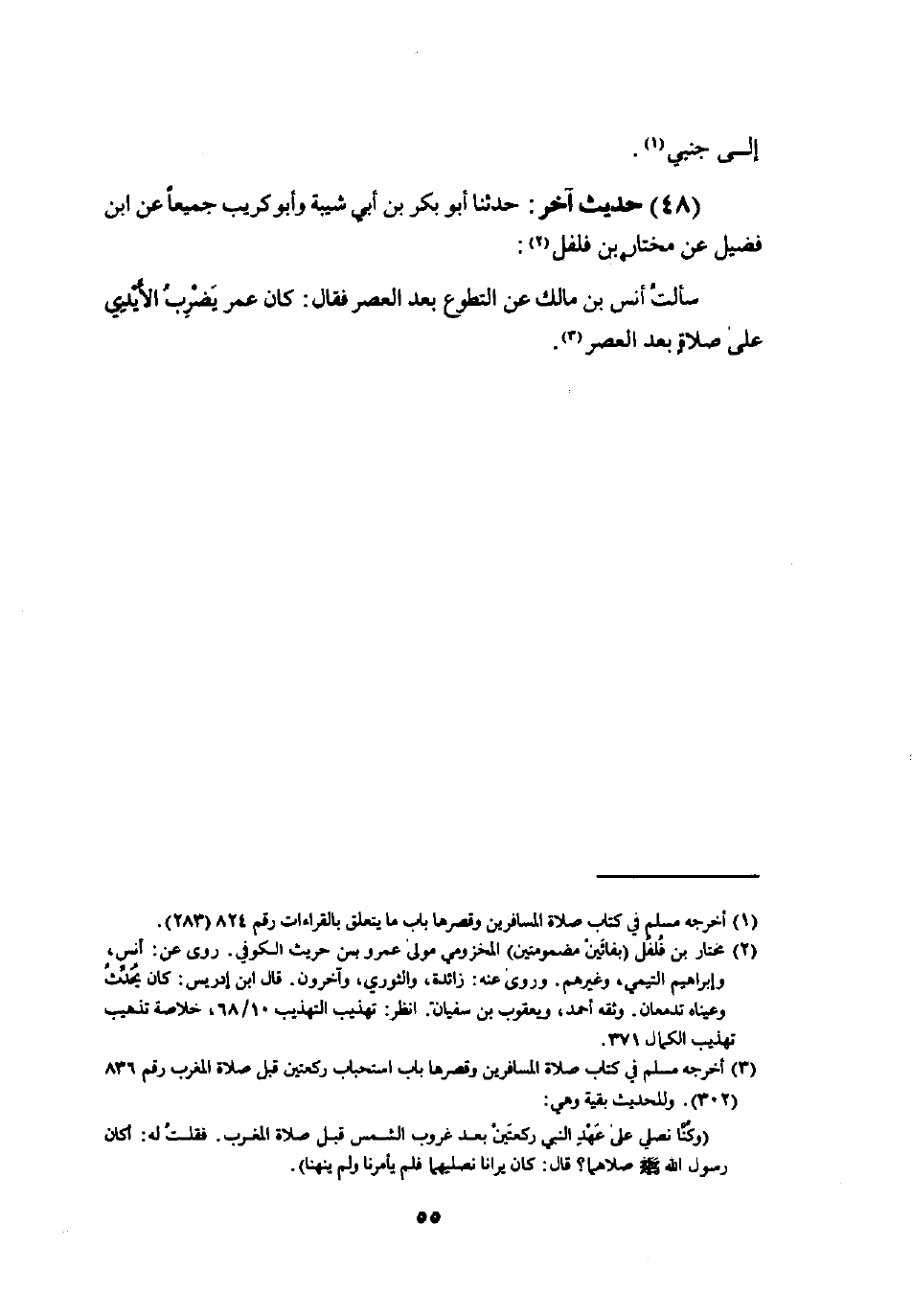 48 - حَدِيث آخر حَدثنَا أَبُو بكر بن أبي شيبَة وَأَبُو كريب جَمِيعًا عَن أبن فُضَيْل عَن مُخْتَار بن فلفل