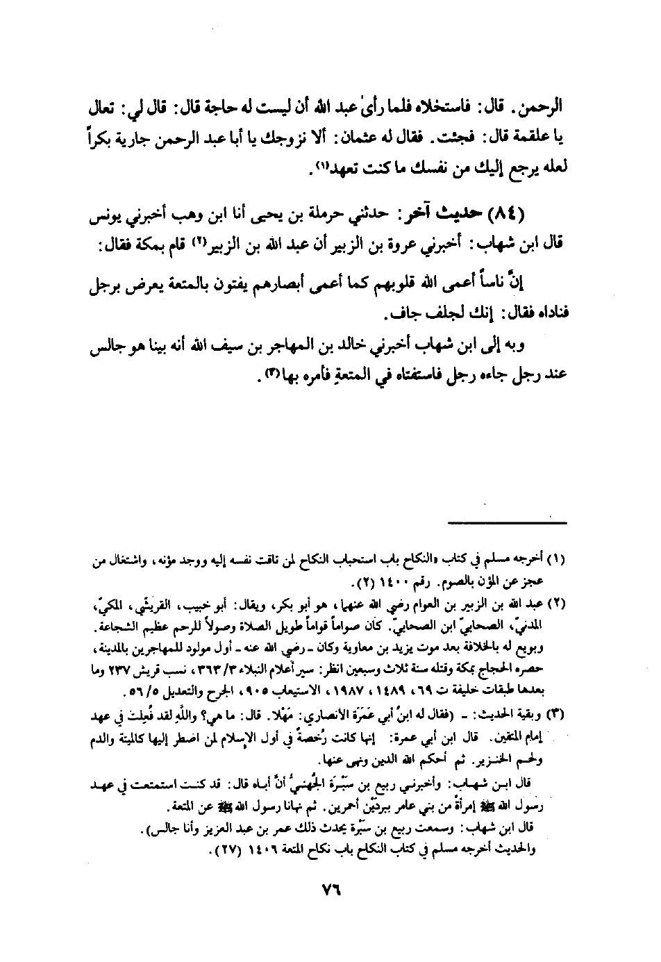 وَبِه الى ابْن شهَاب أَخْبرنِي خَالِد بن المُهَاجر بن سيف الله أَنه بَينا هُوَ جَالس عِنْد رجل جَاءَهُ رجل فاستفتاه فِي الْمُتْعَة فَأمره بهَا