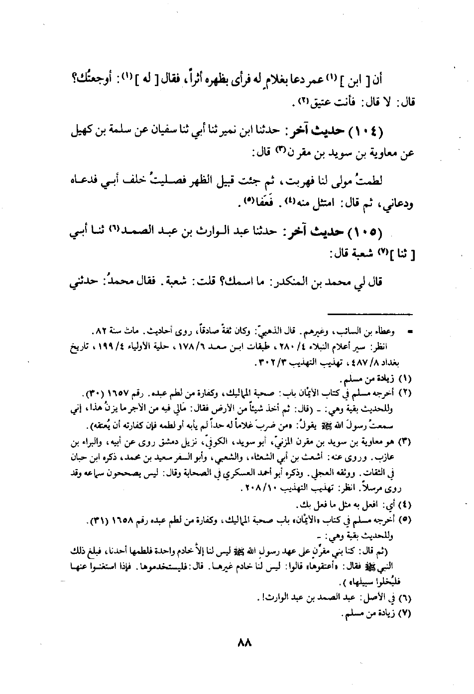 104 - حَدِيث آخر حَدثنَا ابْن نمير ثَنَا أبي ثَنَا سُفْيَان عَن سَلمَة بن كهيل عَن مُعَاوِيَة بن سُوَيْد بن مقرن قَالَ