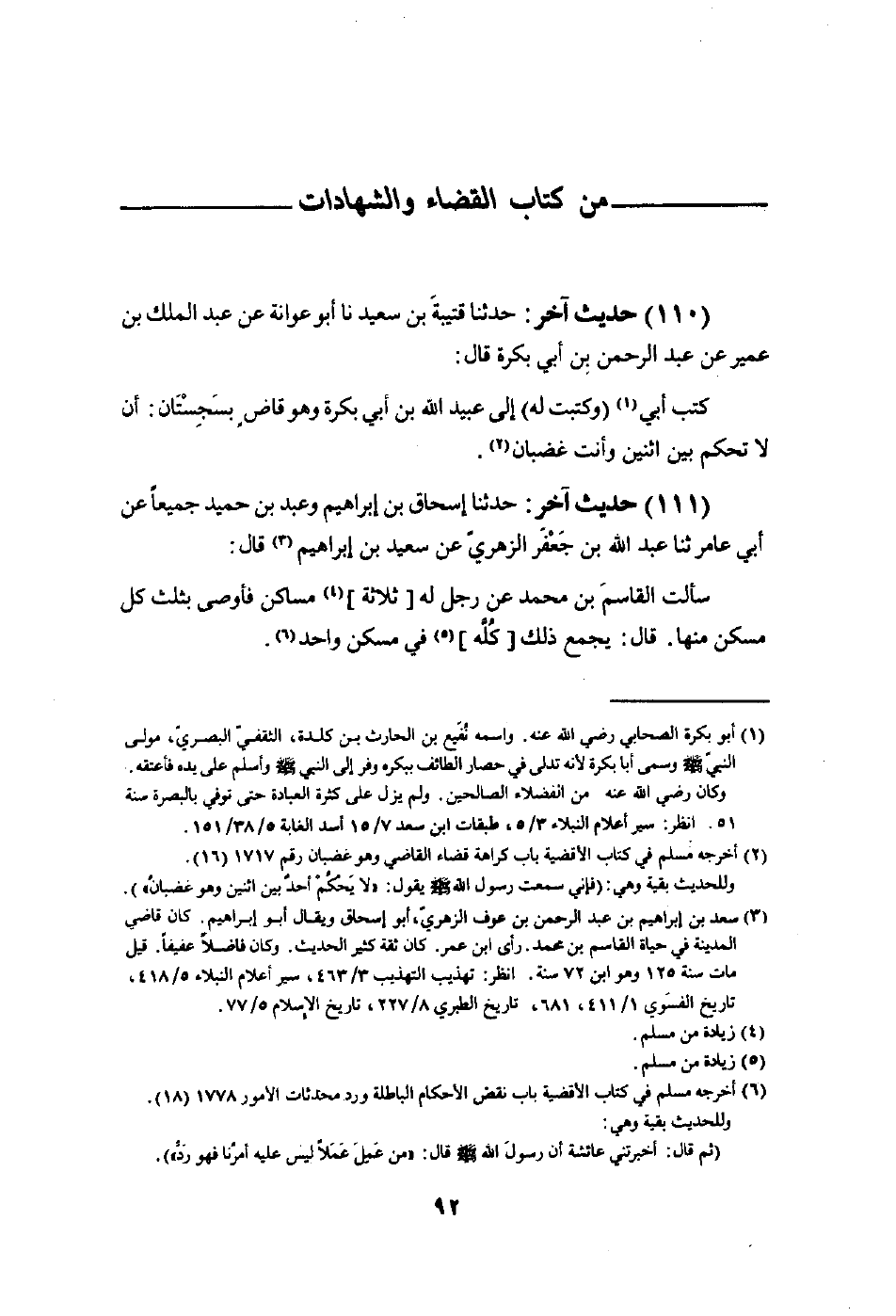 110 - حَدِيث آخر حَدثنَا قُتَيْبَة بن سعيد نَا أَبُو عوَانَة عَن عبد الْملك بن عُمَيْر عَن عبد الرَّحْمَن بن أبي بكرَة قَالَ