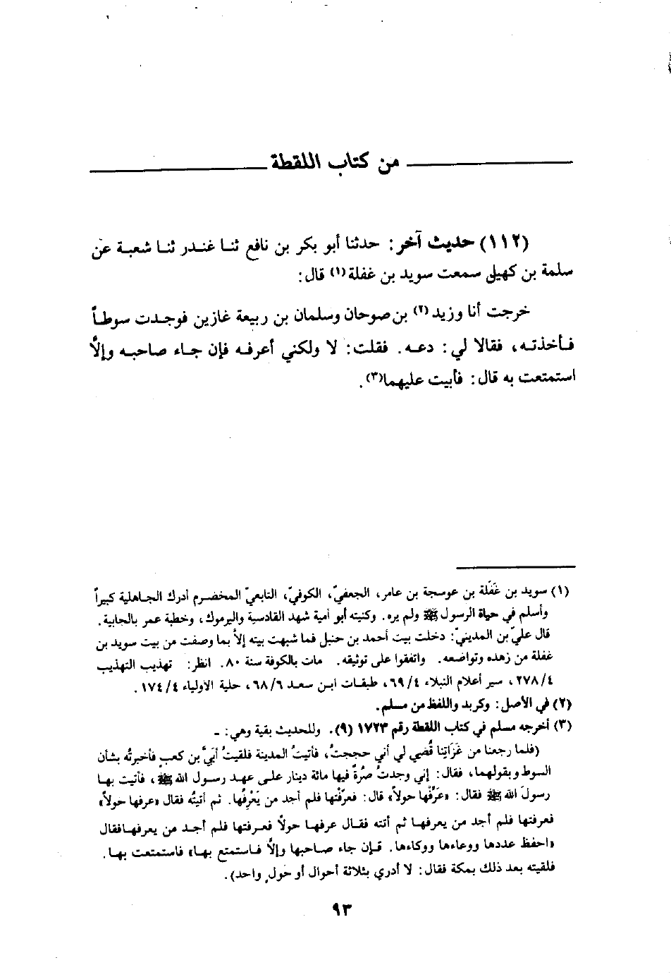 112 - حَدِيث آخر حَدثنَا أَبُو بكر بن نَافِع ثَنَا غنْدر ثَنَا شُعْبَة عَن سَلمَة بن كهيل سَمِعت سُوَيْد بن غَفلَة قَالَ
