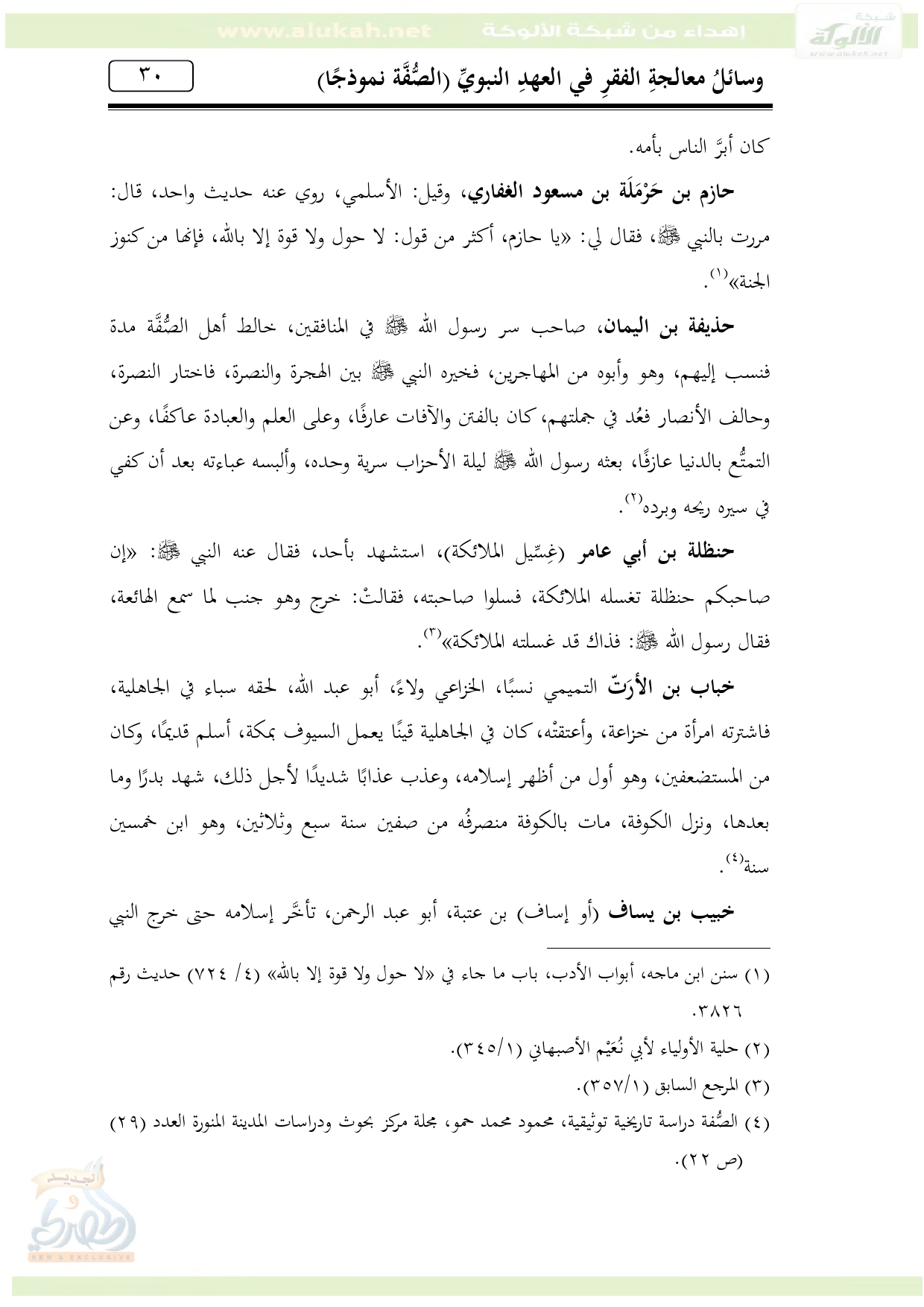 (¬4) الصُّفة دراسة تاريخية توثيقية، محمود محمد حمو، مجلة مركز بحوث ودراسات المدينة المنورة العدد (29) (ص 22).