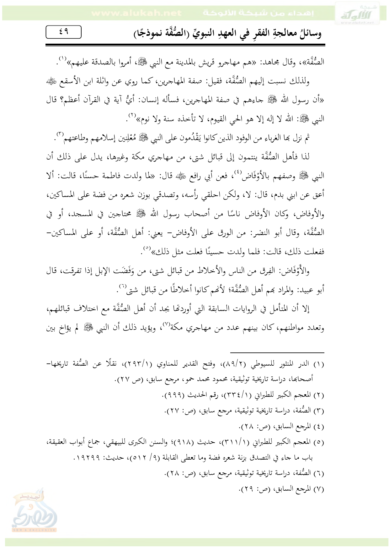 (¬1) الدر المنثور للسيوطي (2/ 89)، وفتح القدير للمناوي (1/ 293)، نقلًا عن الصُّفة تاريخها- أصحابها، دراسة تاريخية توثيقية، محمود محمد حمو، مرجع سابق، (ص 27).