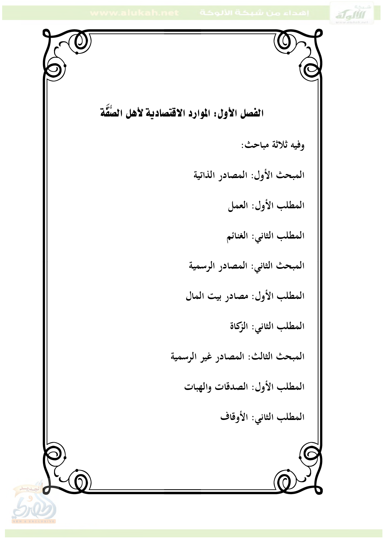 الفصل الأول: الموارد الاقتصادية لأهل الصُّفَّة