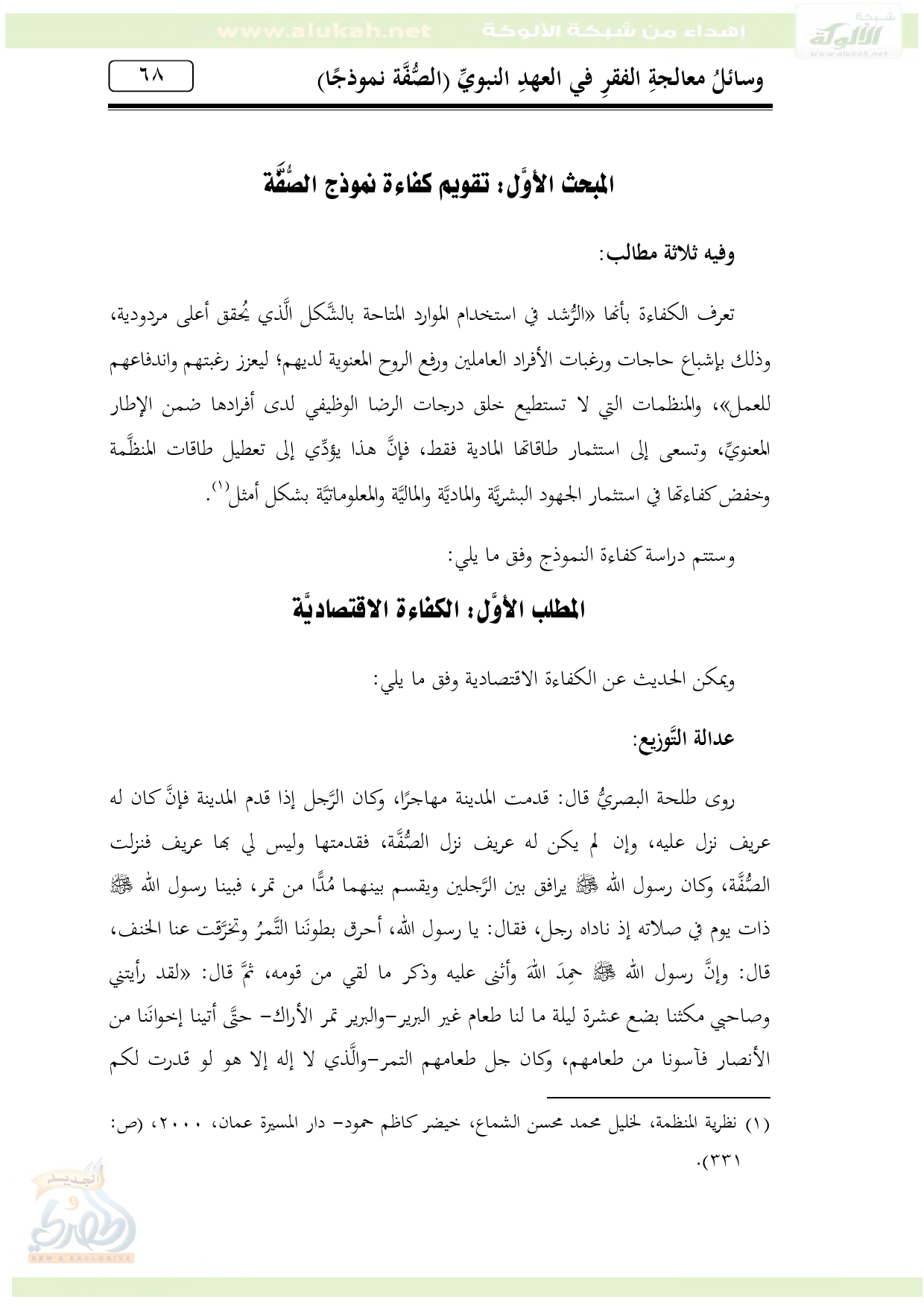 كتاب وسائل معالجة الفقر في العهد النبوي (أهل الصفة أنموذجا) (اسم الجزء: 1)