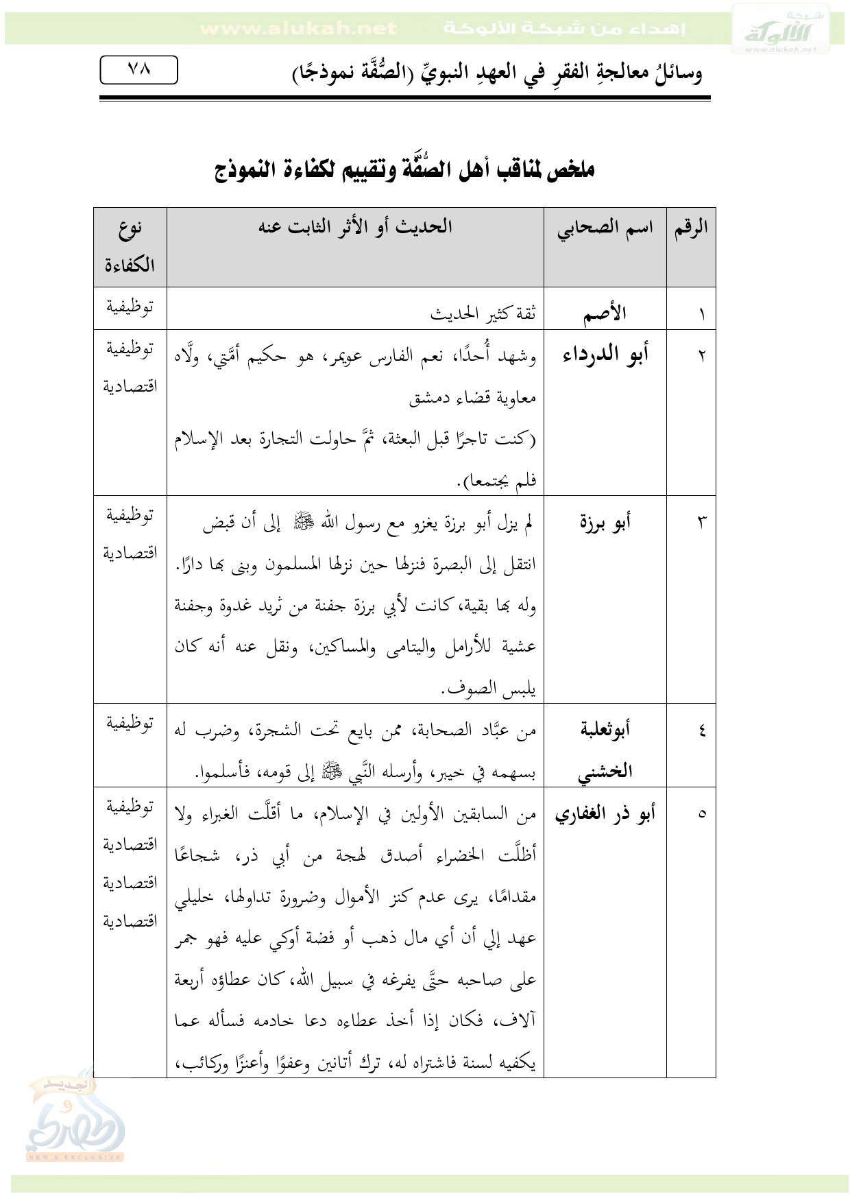 ملخص لمناقب أهل الصُّفَّة وتقييم لكفاءة النموذج