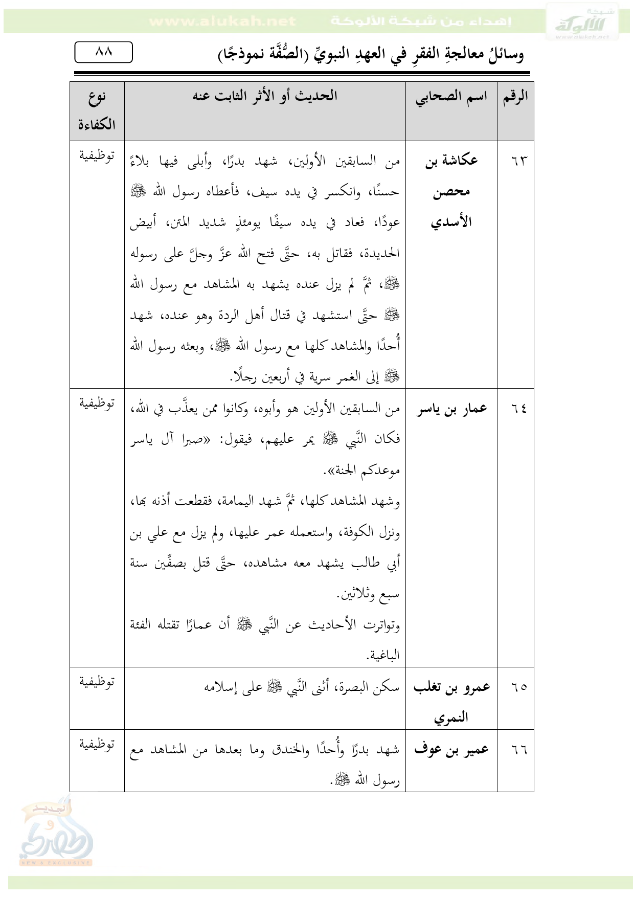 66 ... عمير بن عوف ... شهد بدرًا وأُحدًا والخندق وما بعدها من المشاهد مع رسول الله - صلى الله عليه وسلم -. ... توظيفية