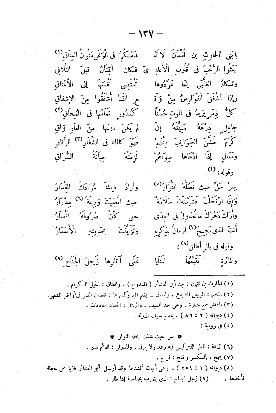 يا بَني الحارِثِ بن لُقمانَ لا تعْ ... دَمكُمُ في الوغى مُتونُ العِتاقِ