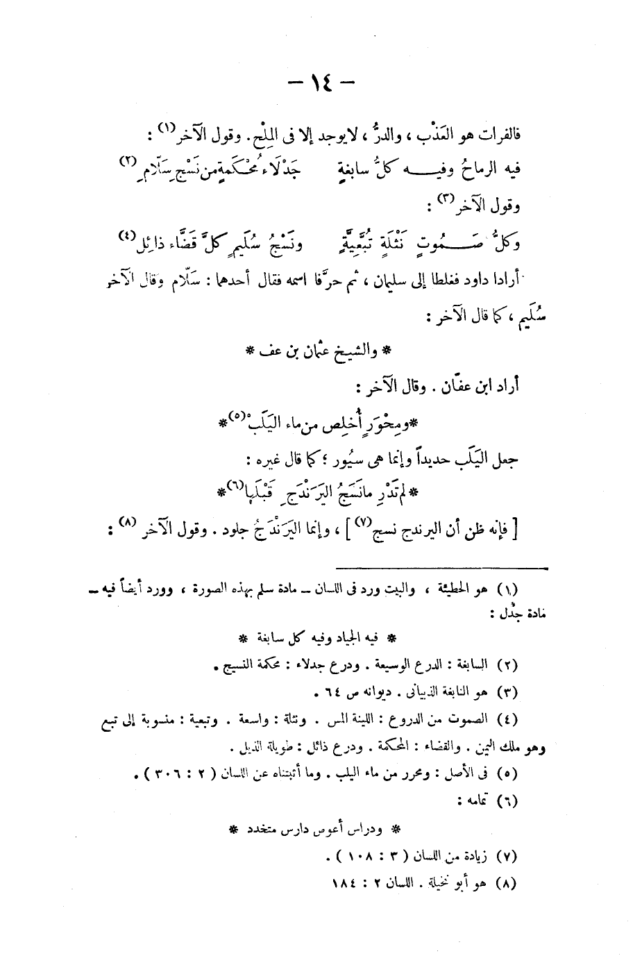 أرادا داود فغلطا الى سليمان، ثم حرّفا اسمه فقال أحدهما: سلاّم وقال الآخر سُلَيم، كما قال الآخر: والشيخ عثمان بن عف أراد ابن عفان. وقال الآخر: