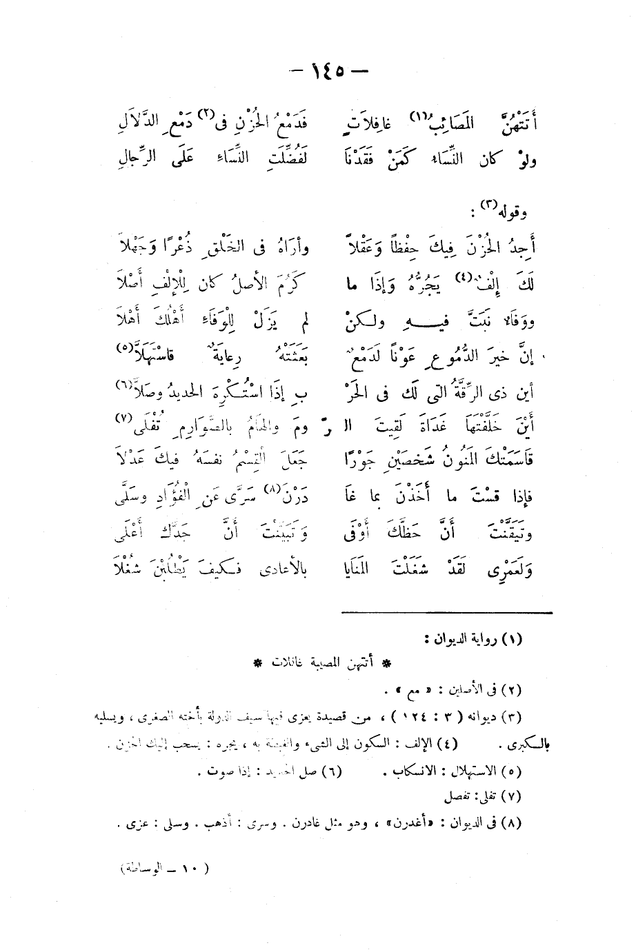 ولو كان النِّساءُ كمَنْ فقدْنا ... لفُضِّلتِ النساء على الرّجالِ