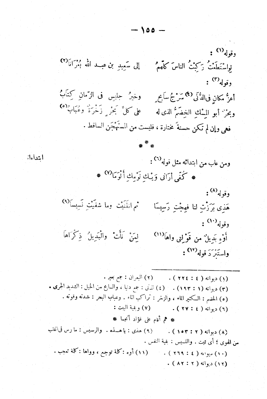 ومن عاب من ابتدائه مثل قوله: